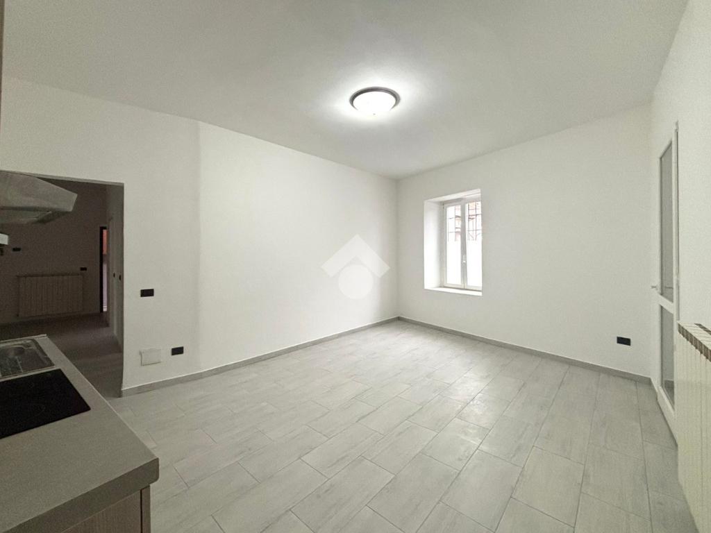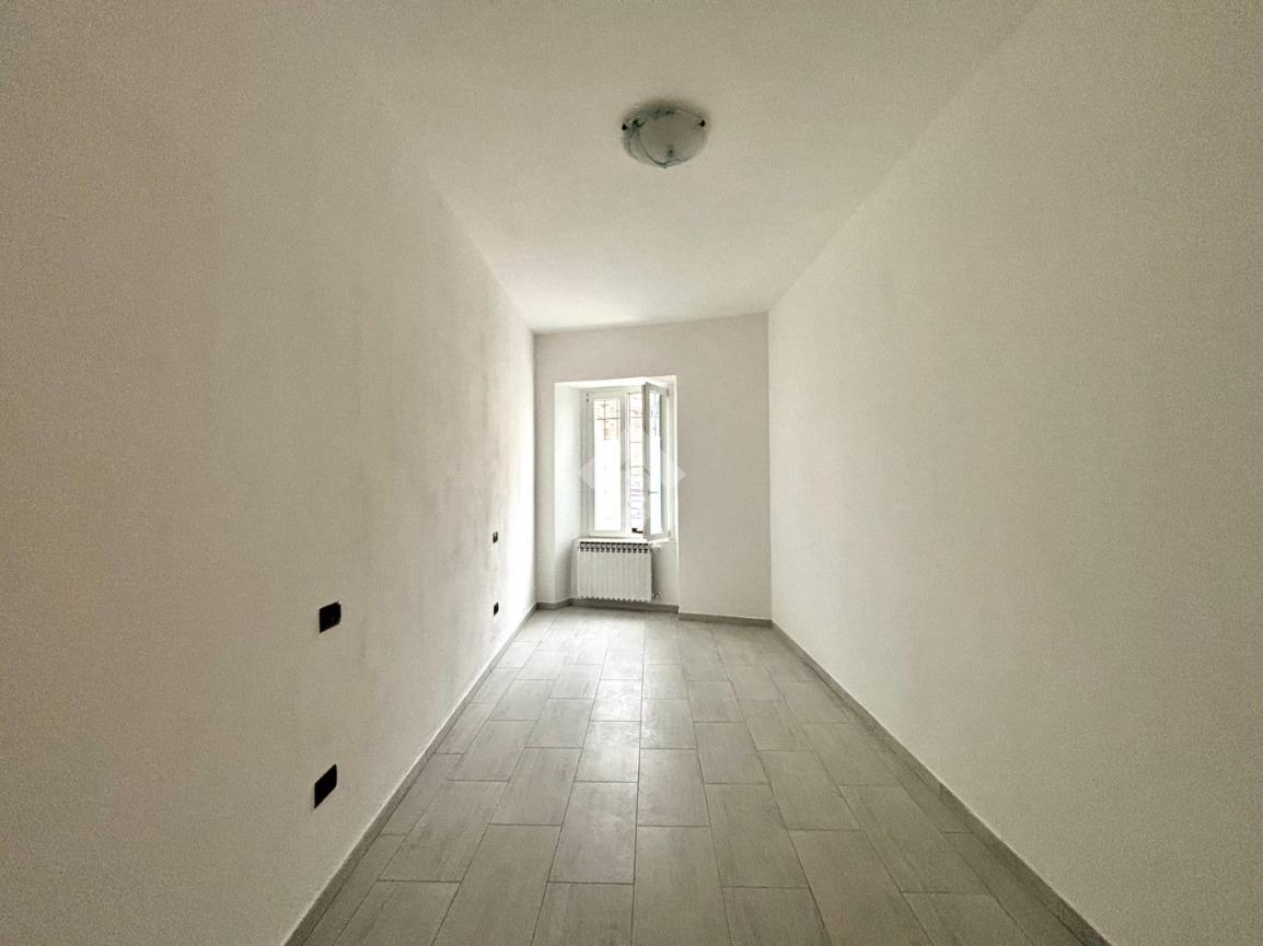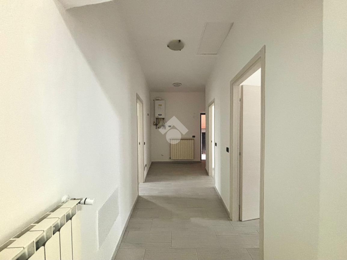 All’ingresso troviamo l'ampio corridoio, sulla sinistra le due camere da letto e sulla destra il bagno di servizio. Proseguendo arriviamo alla zona giorno dove è presente il soggiorno con cucina a vista e l'accesso alla cantina. L’appartamento è stato completamente ristrutturato nel 2025 e viene venduto completo di bagno e cucina.