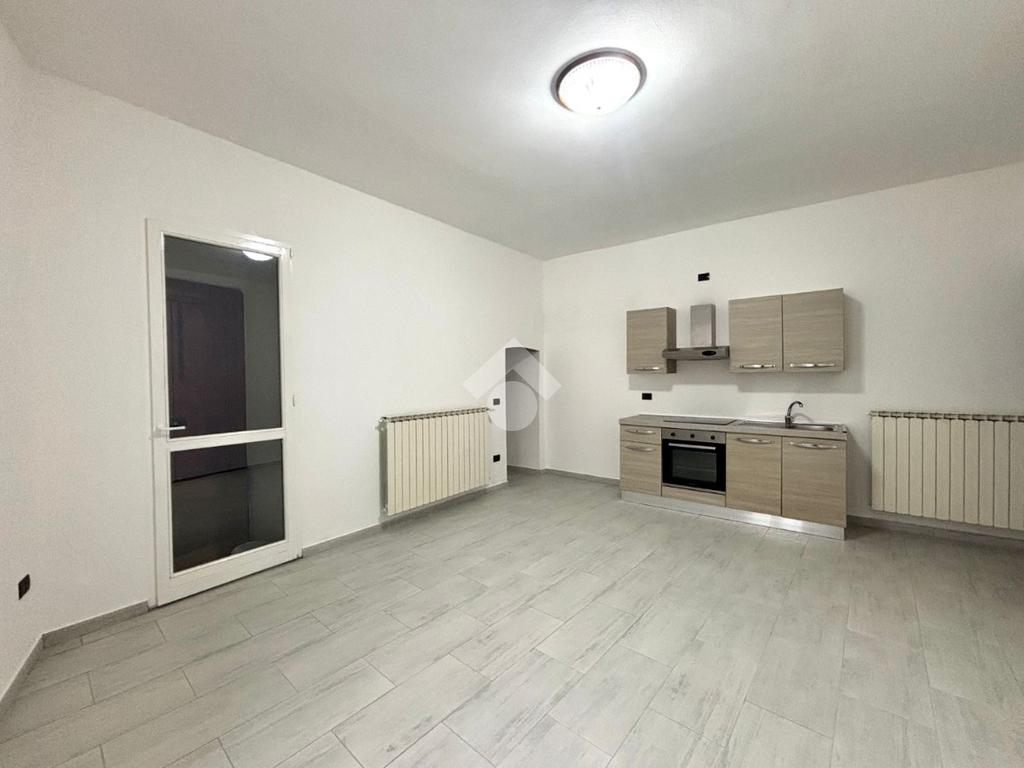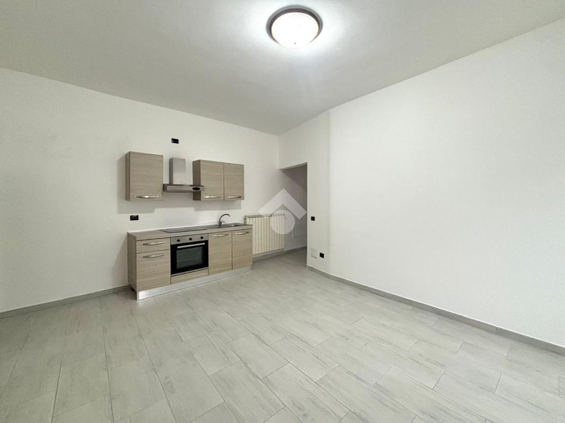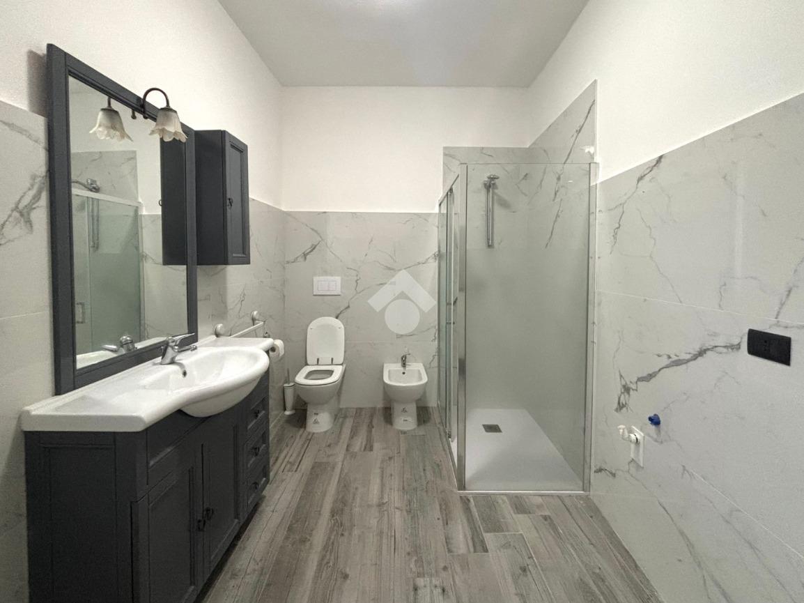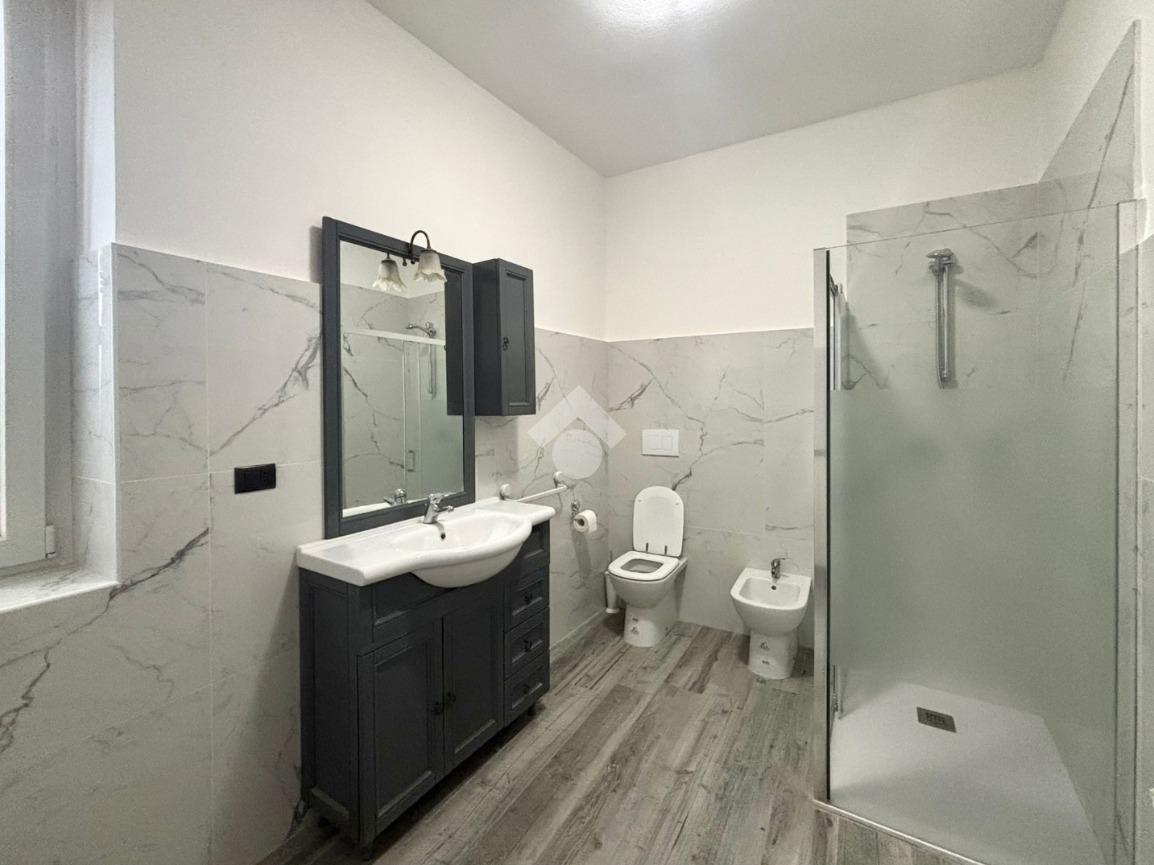 All’ingresso troviamo l'ampio corridoio, sulla sinistra le due camere da letto e sulla destra il bagno di servizio. Proseguendo arriviamo alla zona giorno dove è presente il soggiorno con cucina a vista e l'accesso alla cantina. L’appartamento è stato completamente ristrutturato nel 2025 e viene venduto completo di bagno e cucina.